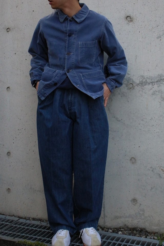 Size: ウエスト:43.5cm 股下:72.5cm 総丈:100cm 渡り幅:31.5cm 裾幅:22cm 1960年台頃のワークパンツ。 その中でも希少なバックルバック 付きの個体。 そして何とも目の引くこのナス紺カラーのボディに、ホワイトカラーにまで褪色したサンフェード。 なんとも見た目、細部のディティール、見た目のインパクトが強いこちらのアイテムですが、是非お洒落に取り入れていただきたい1着。 完璧かと。 ※フェード部にダメージ、その他汚れ、ダメージのある商品です。 画像にてご確認の上お買い求め下さいませ。
