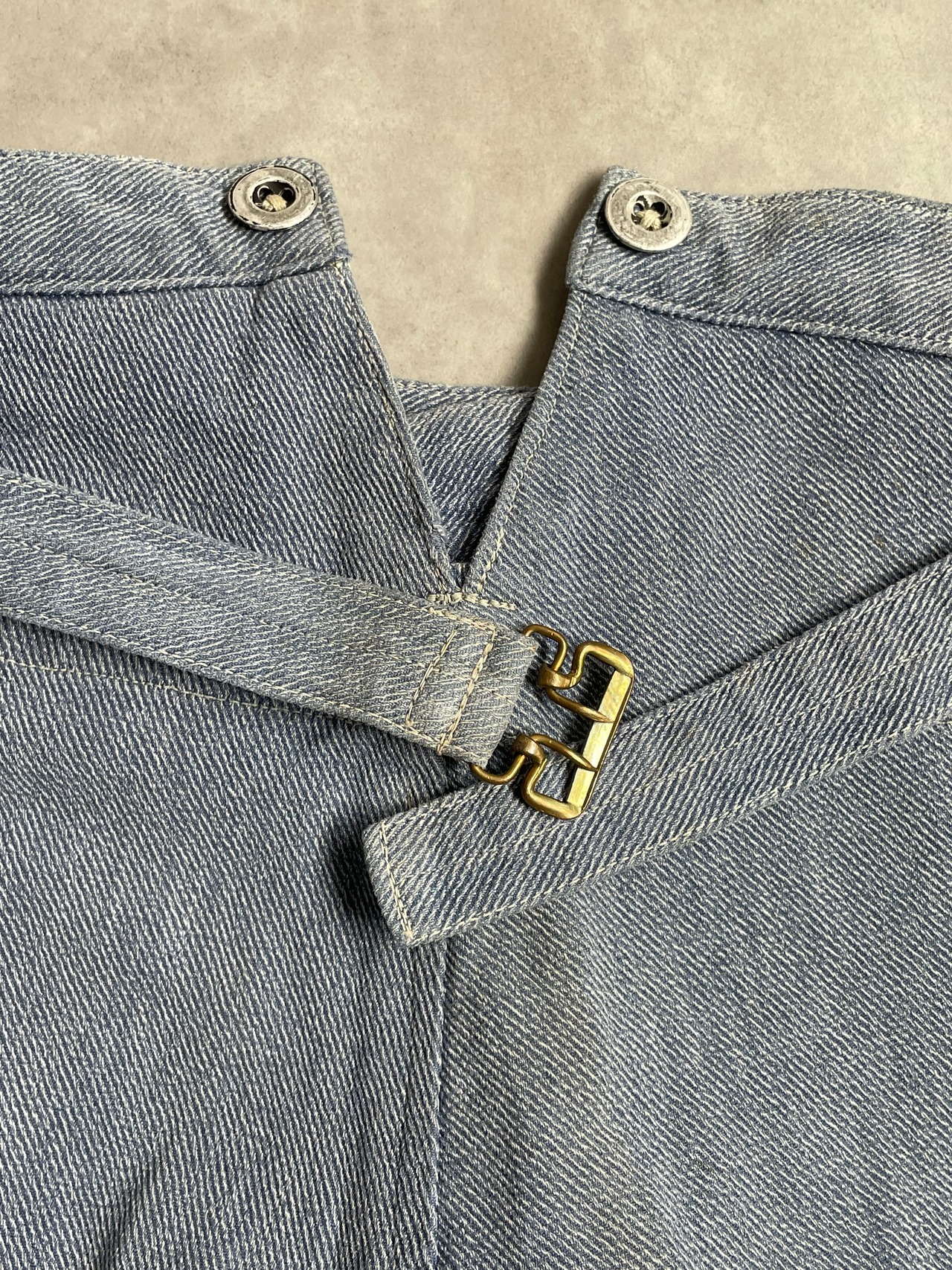 ボタンフライからサスペンダーボタンまで全てメタルボタンが使用され、ヴィンテージらしい雰囲気