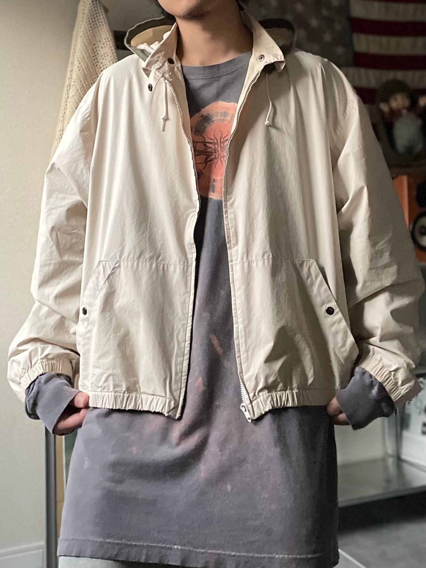 一見よくあるブルゾンに見えますが、細部を切り取っていくとなかなか面白い逸品です