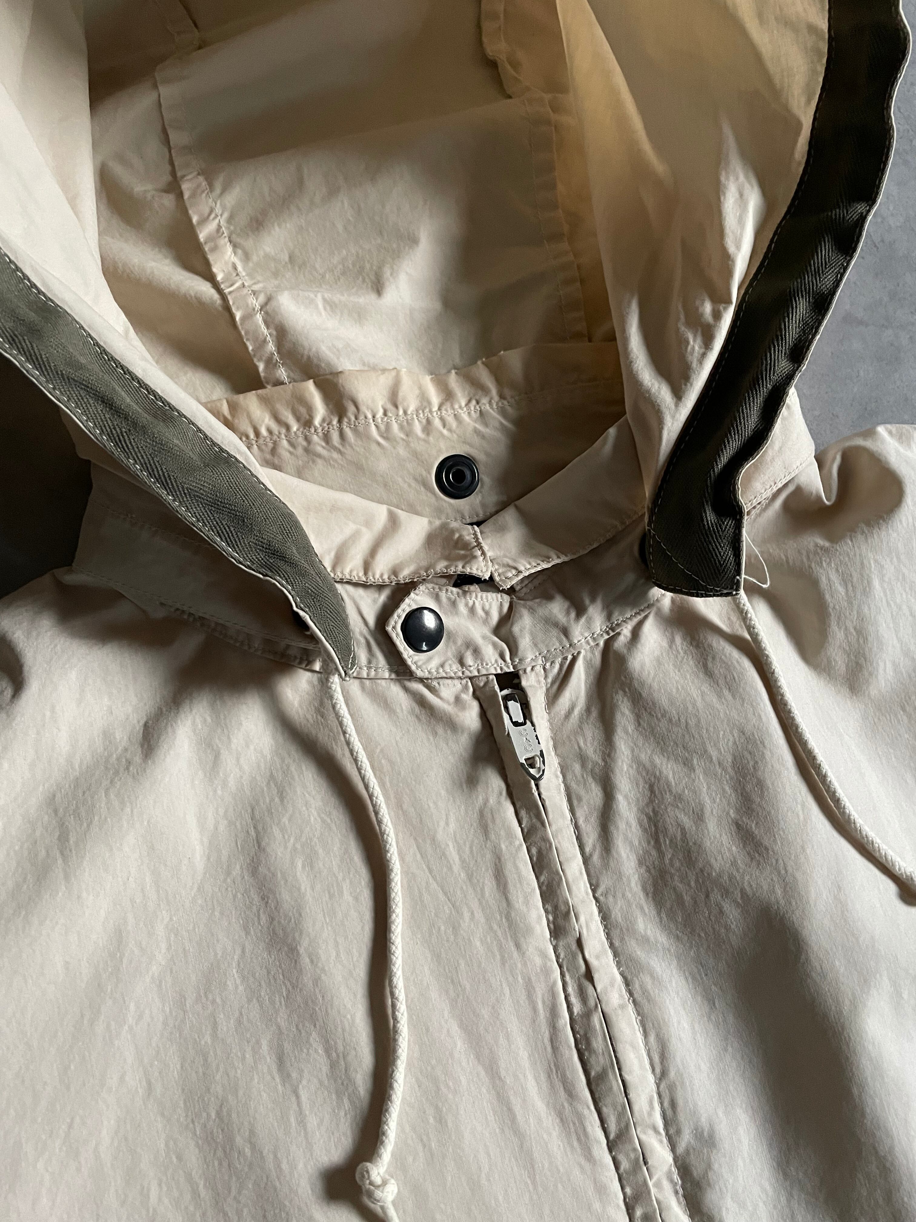 深めのフードは取り外し可能で、ジップはC&C