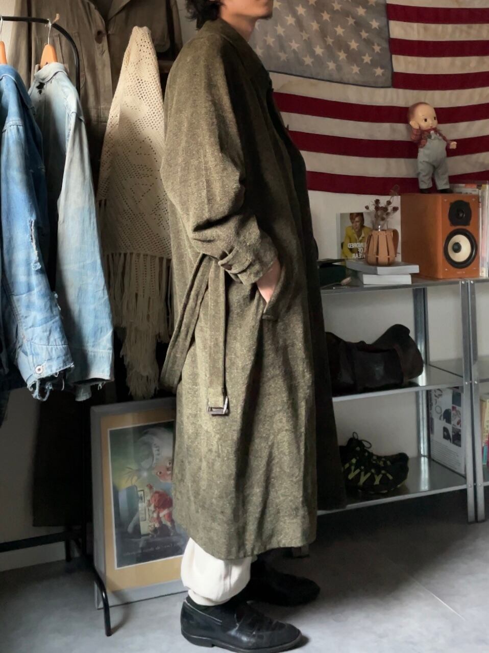 レーヨン,アクリルのブークレ織という珍しすぎる生地で大判なコート