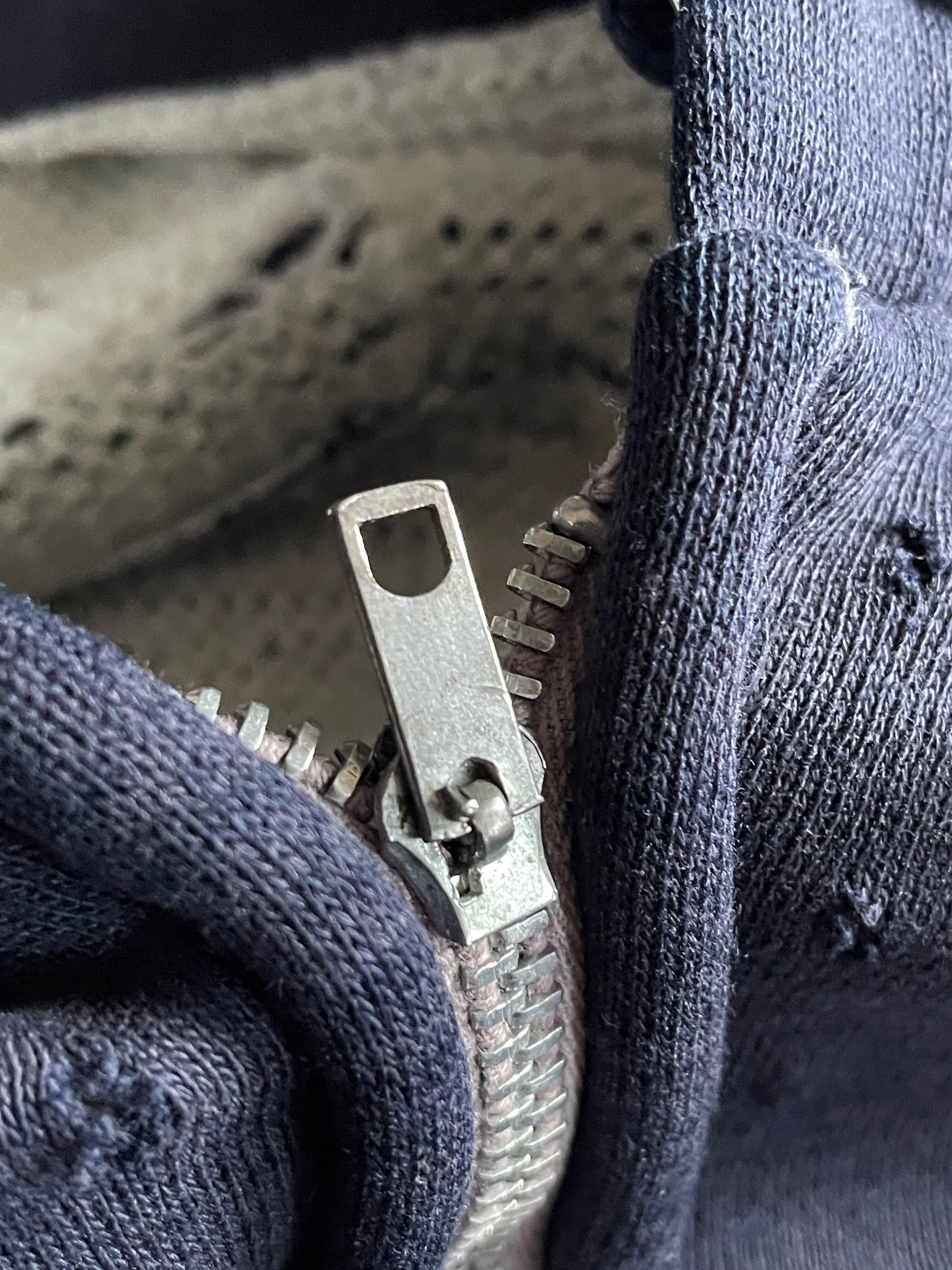 元のネイビー色から褪色しており、ナス紺のような色味になっております。