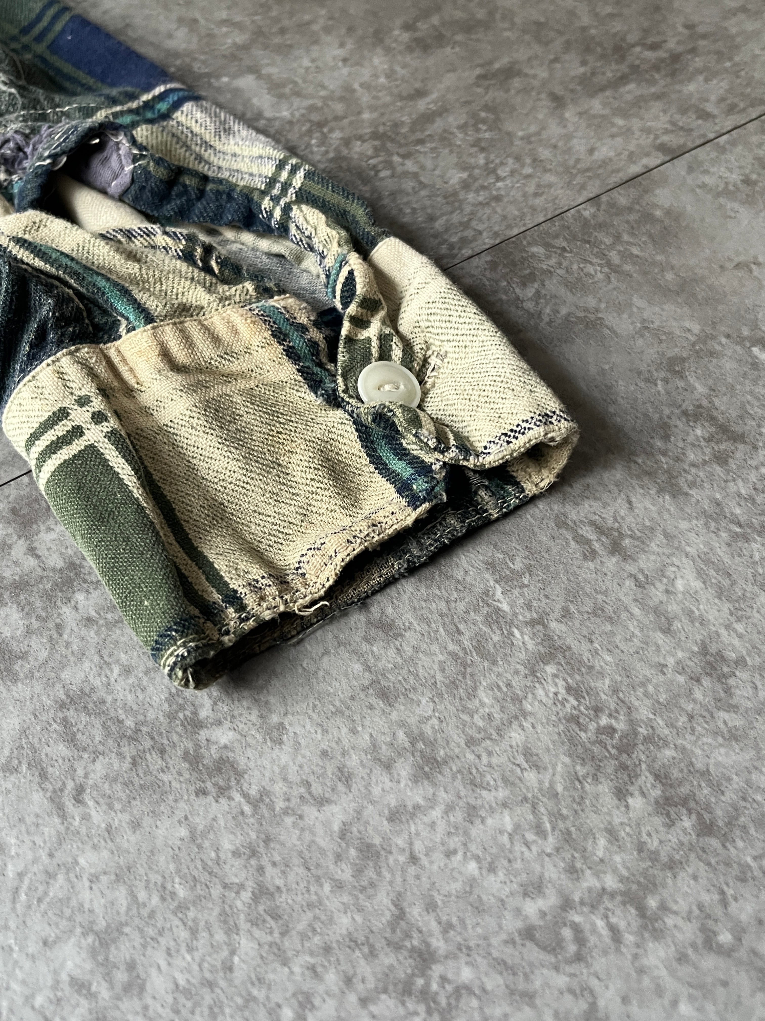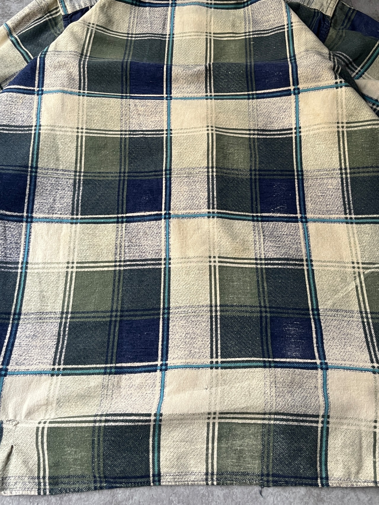 ※襟周り、肘周り、袖口にダメージ、リペア有り。その他ダメージ、小さな汚れあり。
