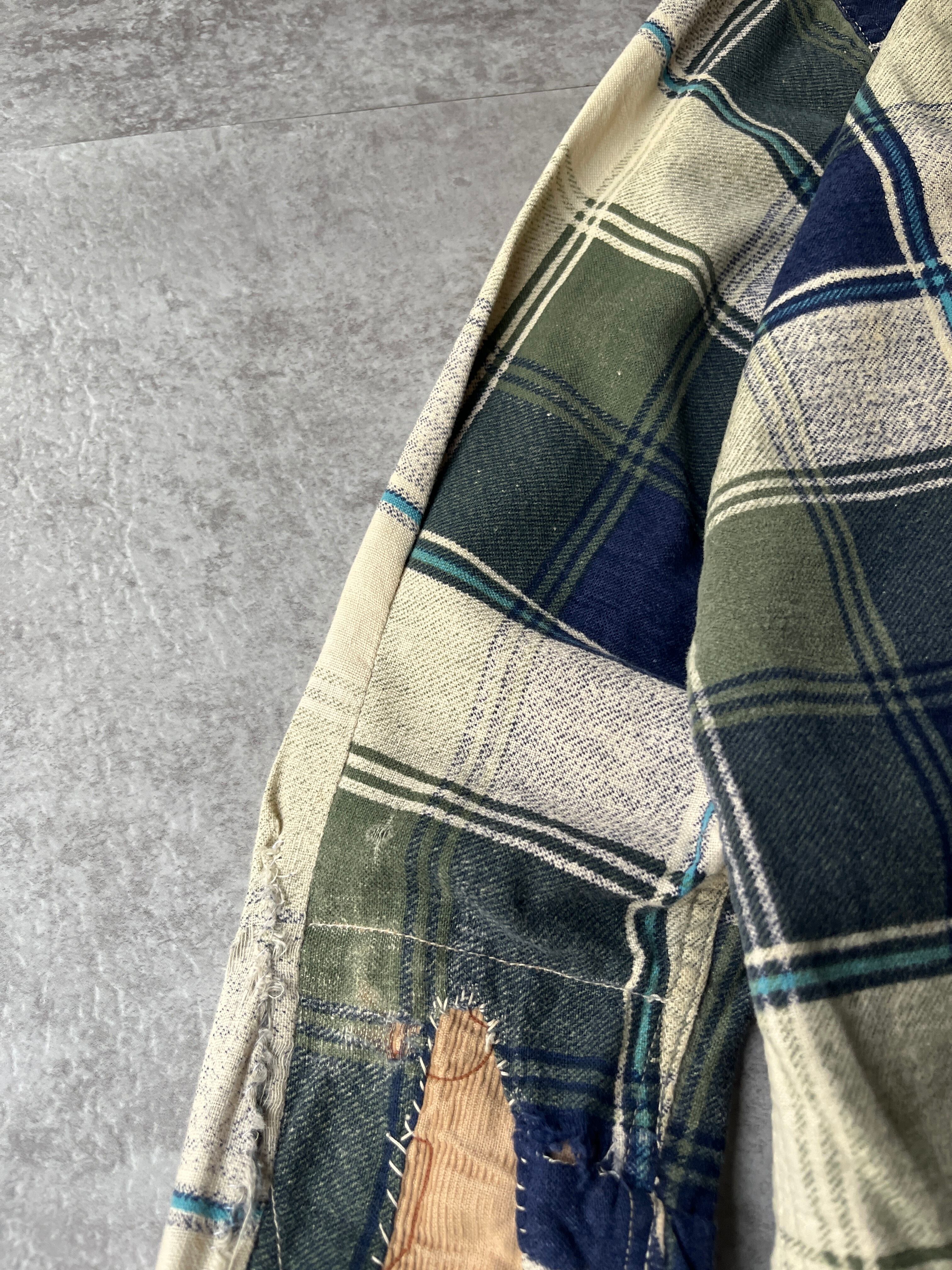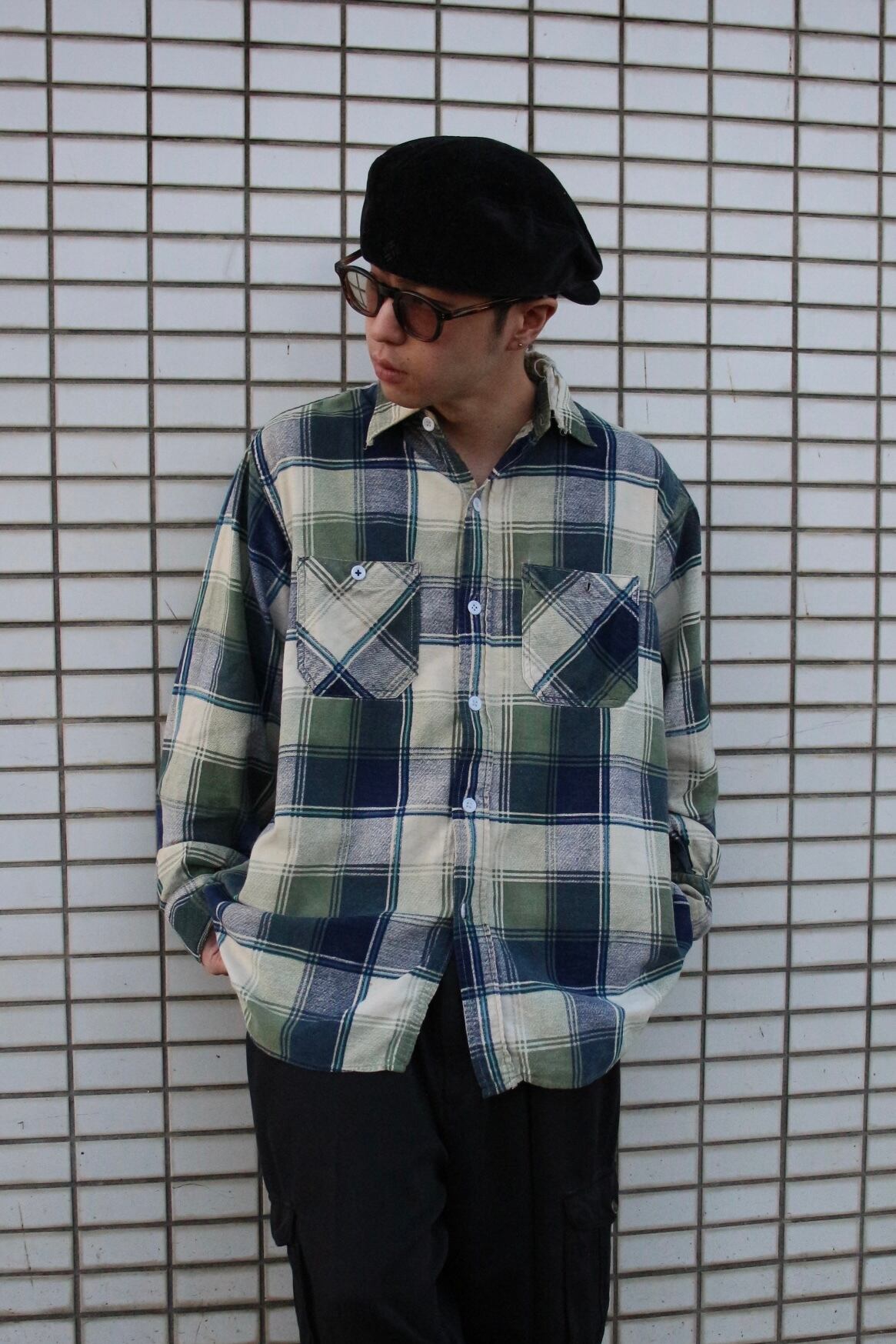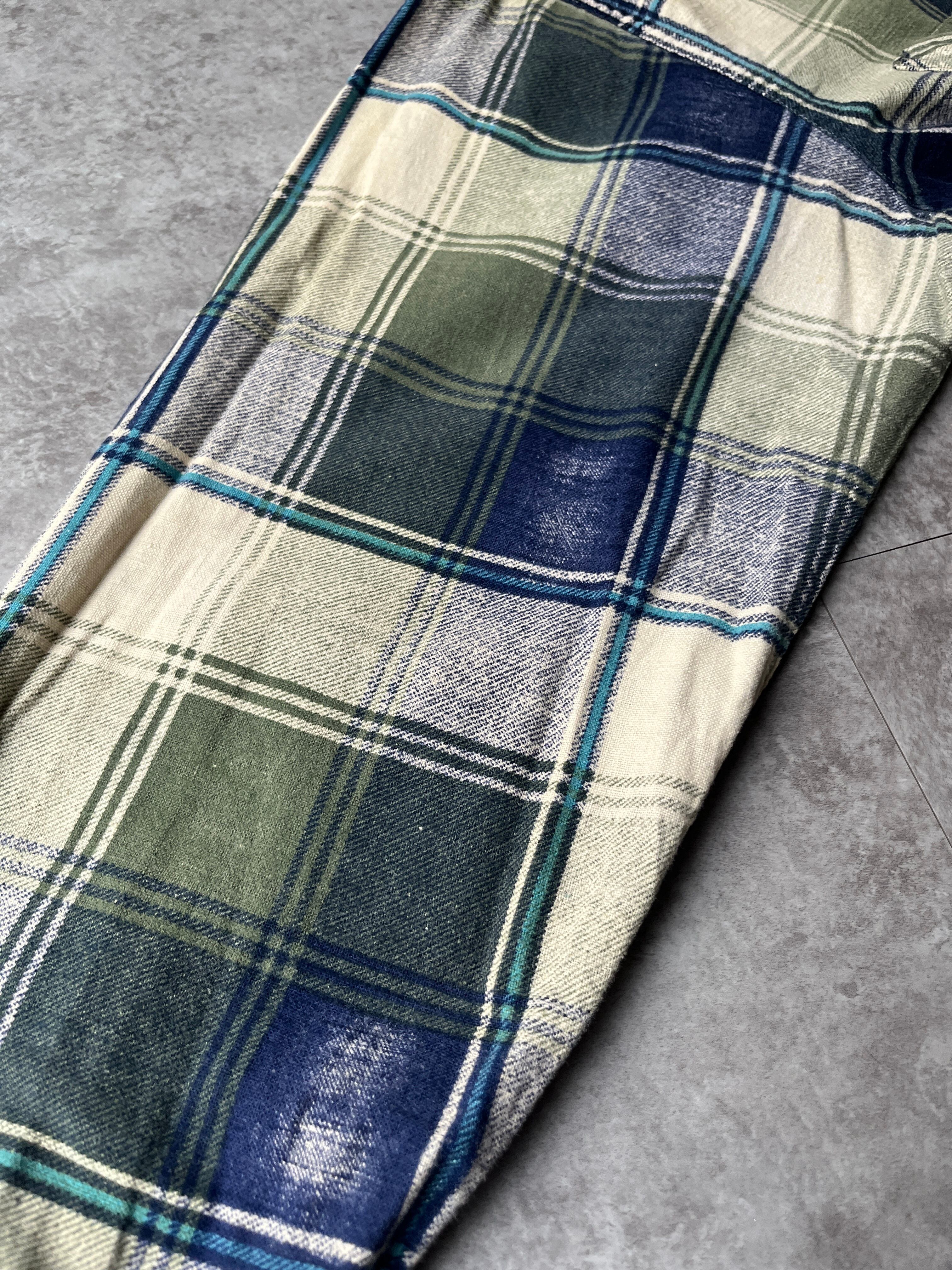 グリーン・ネイビー・生成りを基調とした落ち着いたチェックパターン。