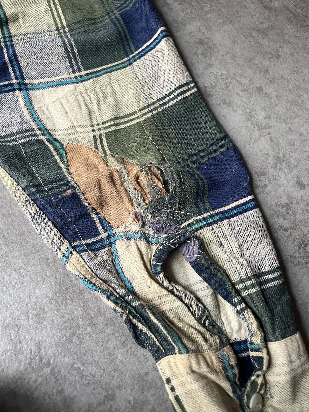 肘周りのコーデュロイ素材を使用したエルボーパッチタイプのリペアが非常にイケてるかと。
