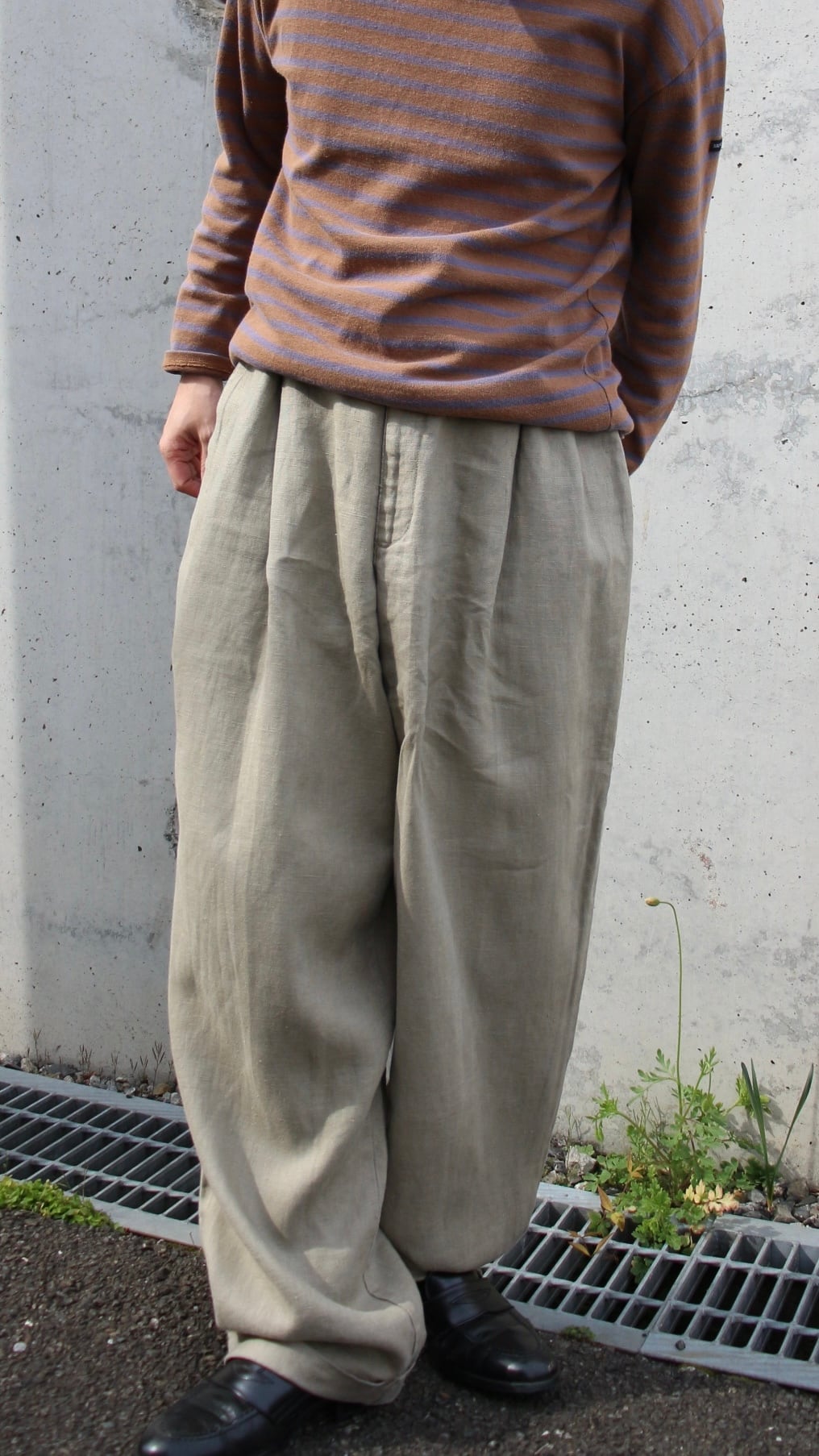 リネン100%の軽やかな生地感に、素材特有のネップ感、ナチュラルなベージュオリーブカラー。
